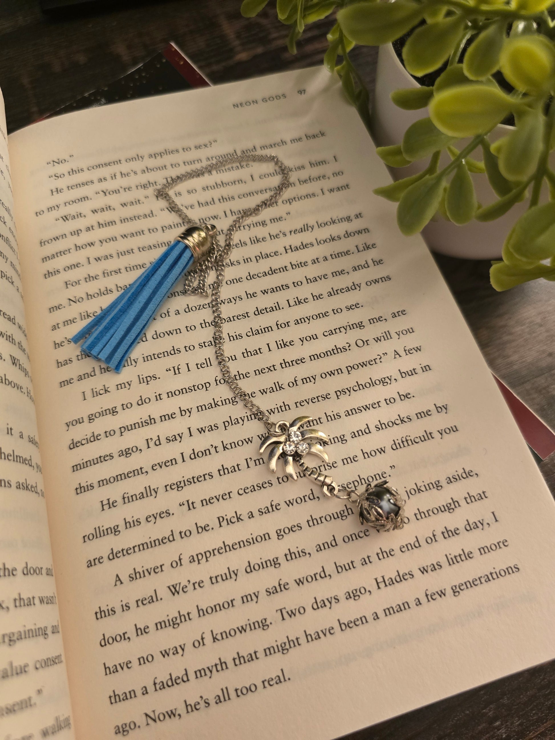 - Silver chain bookmark - Fits small and large books with up to 10" spine